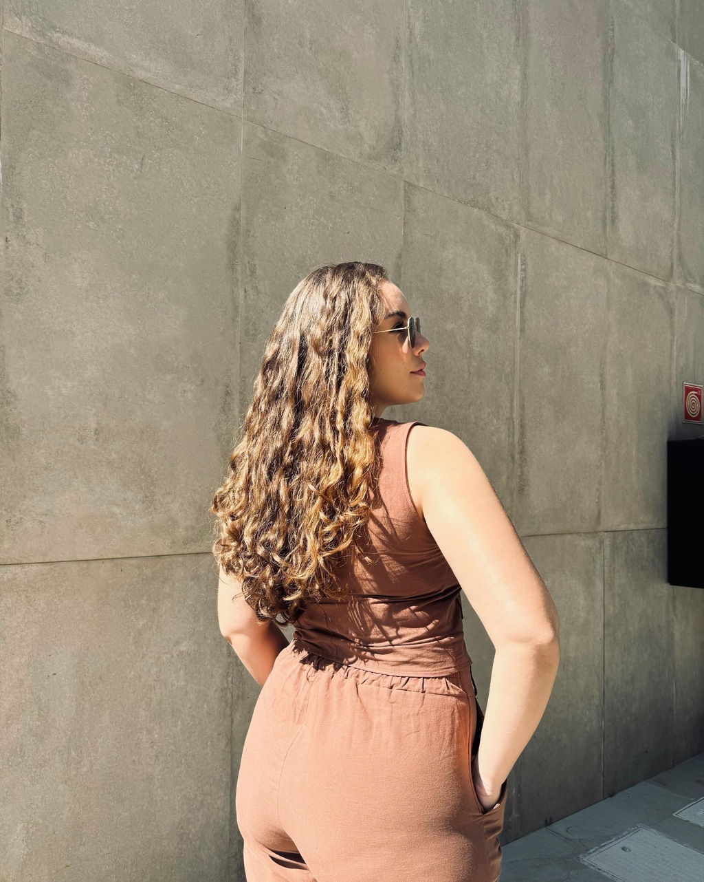 Peças feitas de tecidos naturais podem ter um encolhimento de até 3% após a lavagem, podendo ser revertido parcialmente pela passadoria da peça.